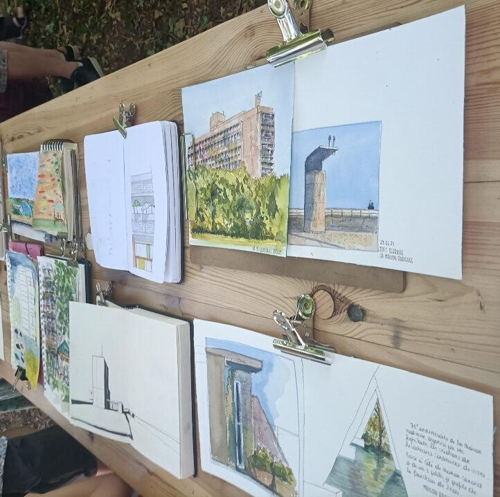 Les Urban sketchers ont réalisé ces dessins dans le cadre du 70e anniversaire de la Maison Radieuse, en 2025.